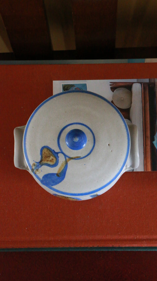 Vintage Hand Painted Lidded Ceramic Pot with Handles