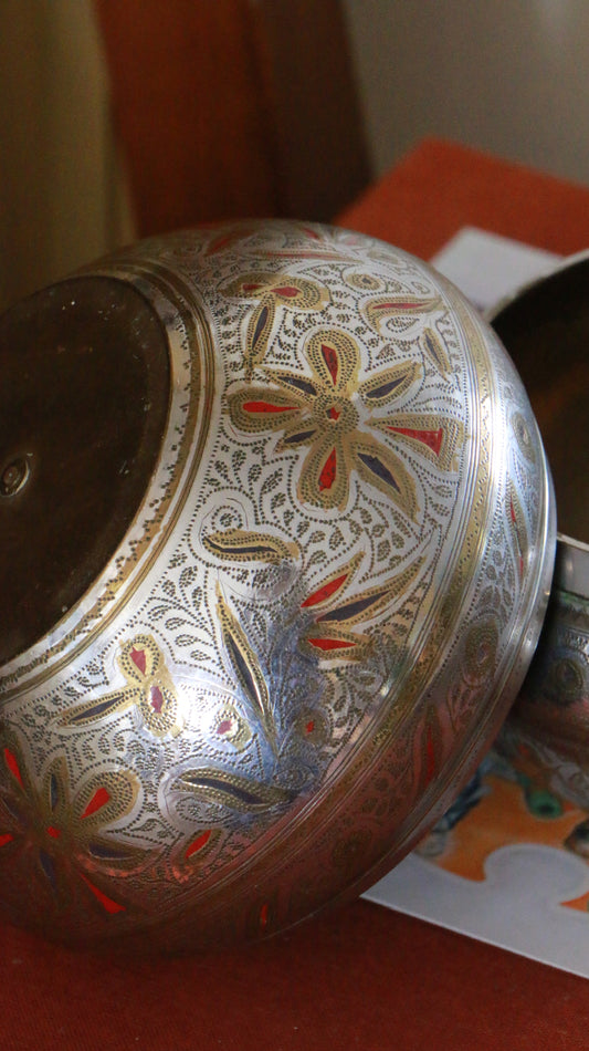 2x Vintage Hand‑Engraved Indian Brass Bowl