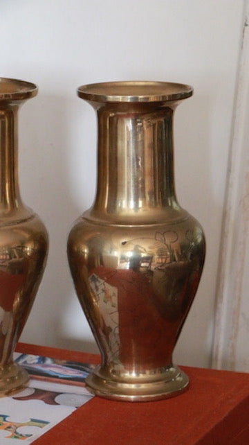 Pair of Vintage Brass Vases with Floral Etching