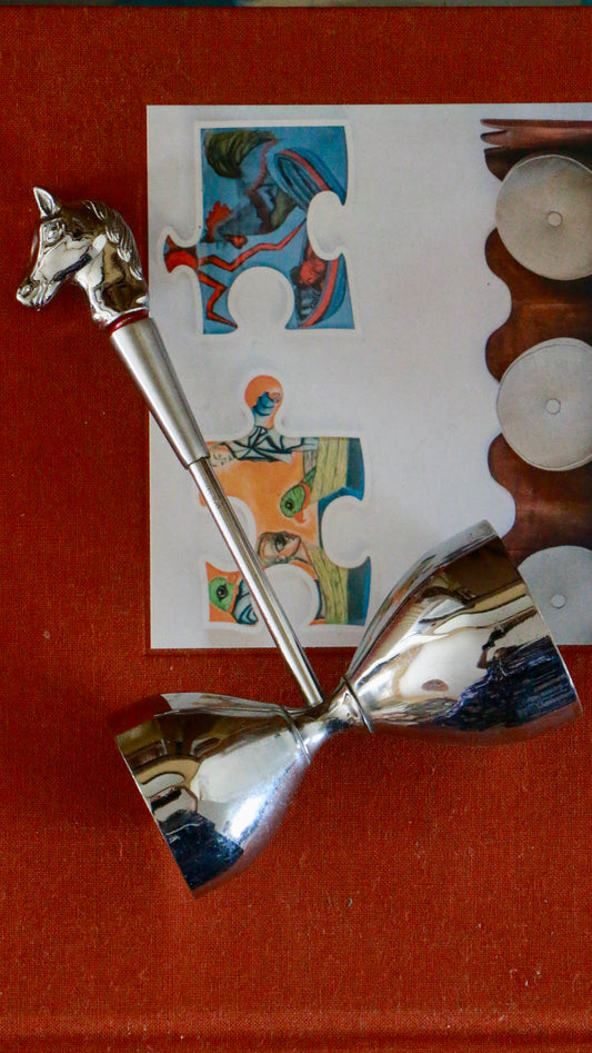 Vintage Silver Plated Double Jigger with Horse Head Handle