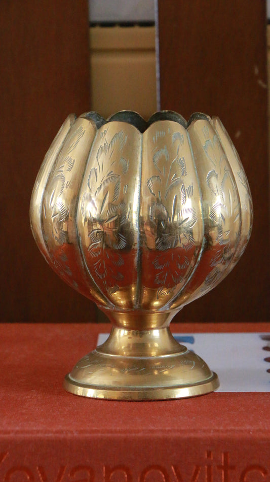 Vintage Brass Lotus Shaped Etched Vase