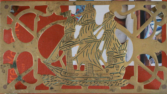 Vintage Brass Trivet with Ship Design and Paw Feet
