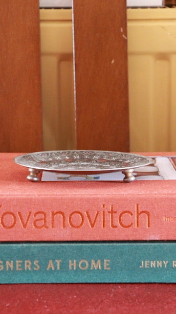Vintage Engraved Brass Pedestal Dish