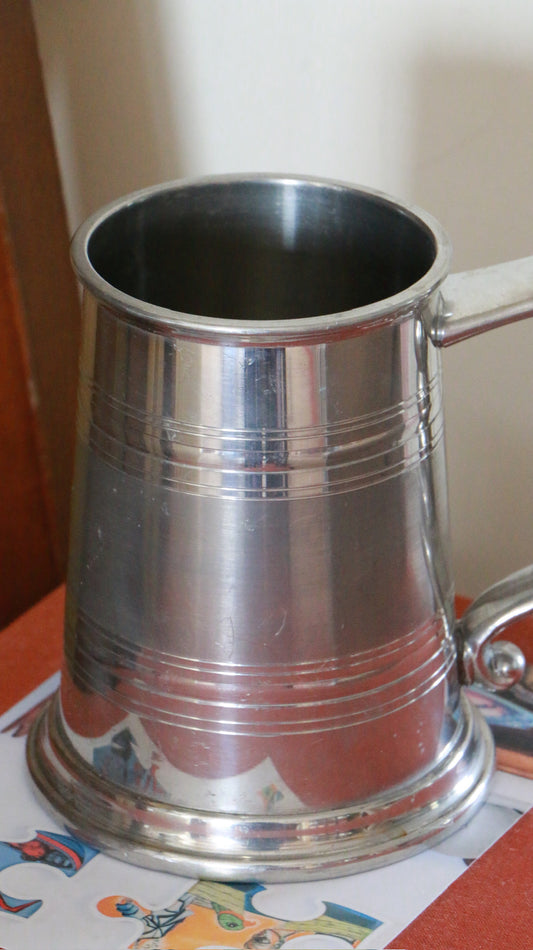 Vintage Pewter Tankard with Bobbin Handle and Swirl Finial