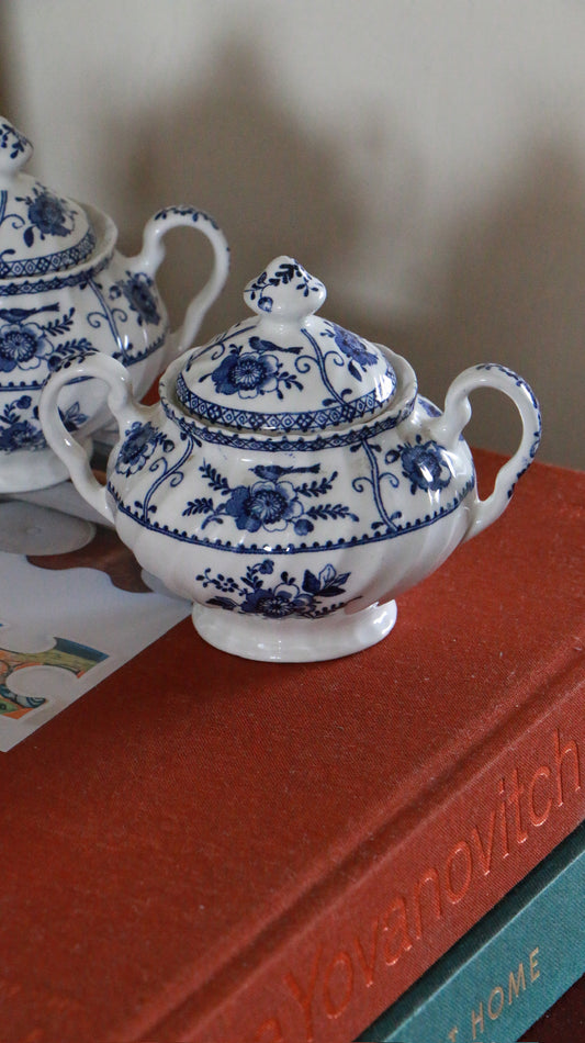 2x 1940s Indies Blue by Johnson Brothers Sugar Bowls with Lids