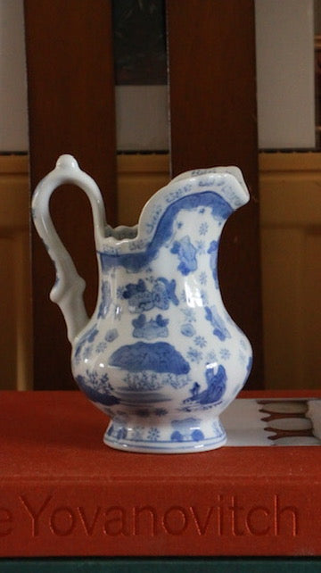 Vintage Blue and White Floral Transferware Jug with Floral & Bird Motif