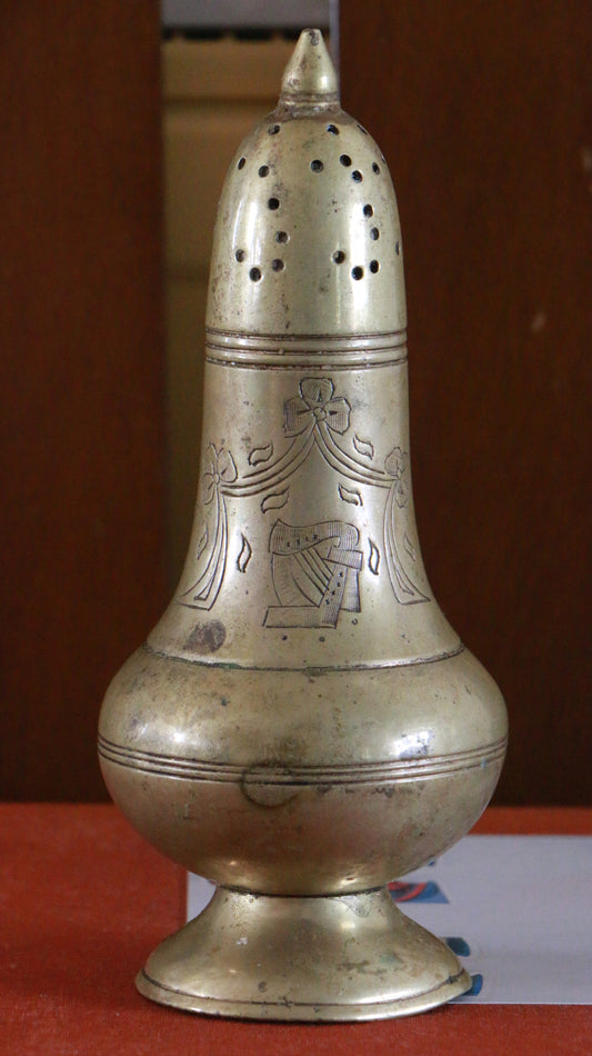 Antique Brass Sugar Caster with Etched Design