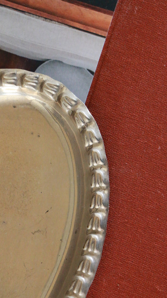 Vintage Silver‑Plated Oval Tray with Scalloped Edge