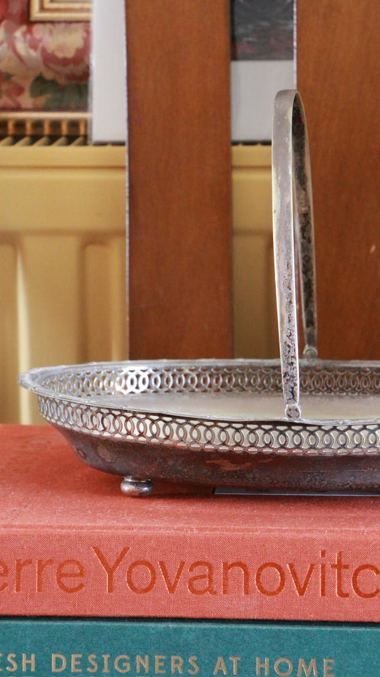 Vintage Silver-Plated Basket Dish with Handle
