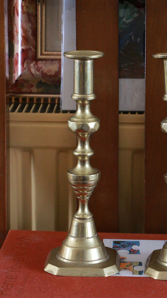 Pair of Vintage Beehive Brass Candlesticks