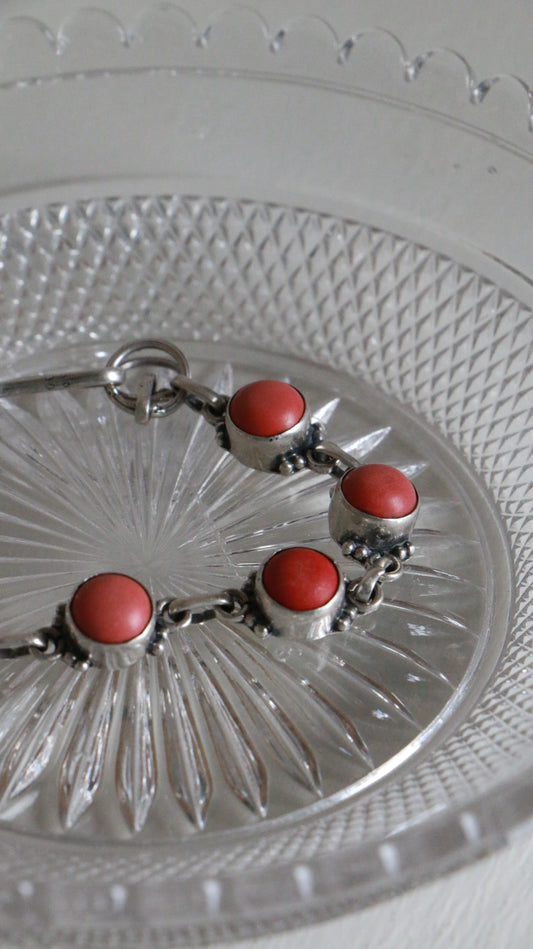 MARRAKESH EDIT - Vintage Sterling Silver Coral Cabochon Bracelet
