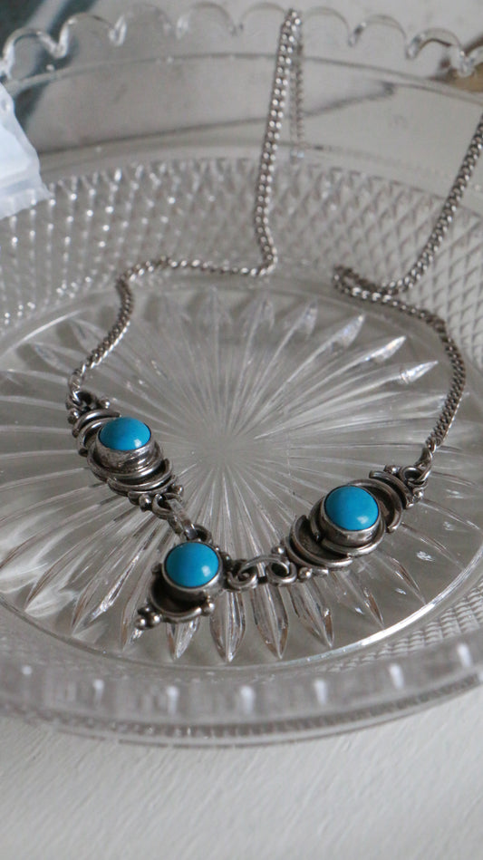 MARRAKESH EDIT - Vintage Sterling Silver Necklace with Turquoise Cabochons